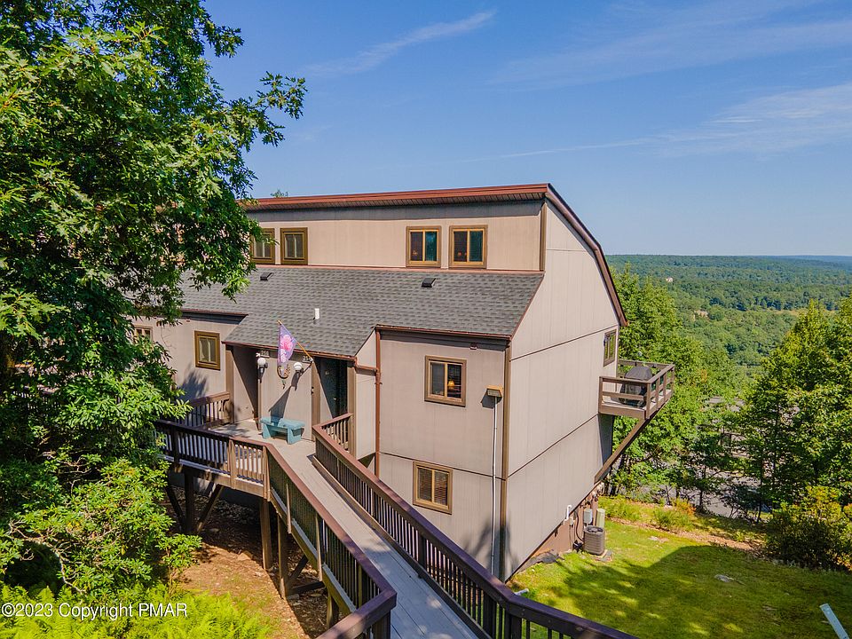 Not all residences at the Village @ Camelback are created equal! We will try to list the benefits and features of this unit, but there may not be enough room here. Along with being slope side so you can ski in & ski out this has established STR income, ground level access, three levels of finished living space, a fourth unfinished lower level can be finished to add even more living space, breath taking views, furnishings are negotiable, this dwelling has undergone a complete rustic renovation that accentuates all that is the Pocono Mountains! If you were looking to create an STR investment that would generate consistent and secured income, 254 High Pass Way will help you build your wealth! The Lower-level hosts 2 bedrooms and a bath. The main level impresses you with the rustic kitchen, living room with fireplace and deck access which presents you with endless views. The quaint upper level boasts the primary loft bedroom and bath suite. There are also the characteristic long stairs and short stairs for your access convenience! If you weren't sold by now, the community closes the deal with the indoor amenity packed package! All inside in a climate-controlled facility, you have the pool, fitness center, track, tennis courts, community room, leasable entertainment space with kitchen and more! Perfectly positioned in the heart of the region, you are moments to the slopes, 3 of the largest water parks, a mountain course, Pocono Shopping Outlets, casinos, nightlife, wineries and more! You definitely need to view this one to experience all it has to offer!