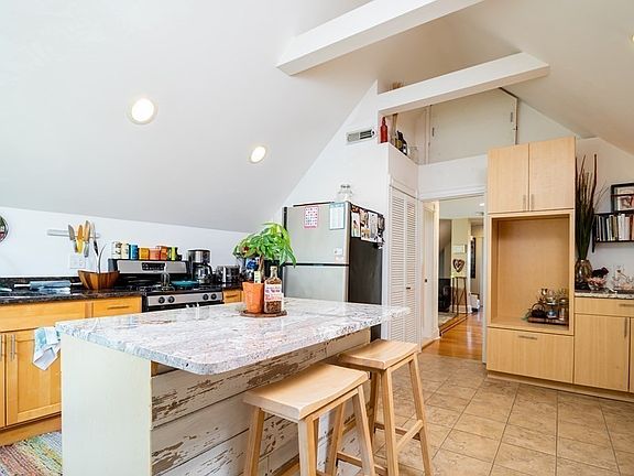 Perched high above it all, this top floor condo boasts vaulted ceilings and panoramic hillside views from the units' front facing BR. Generously proportioned eat in kitchen with all lower cabinets and granite counters along with a center island - Washer and Dryer are located in the unit. All rooms have generous sized windows with abundant natural light. There is ample storage located in basement. This unit has Central Air - One assigned parking space. Great Davis/Porter location! Walking distance from the bike path, restaurants, shopping, grocery stores, bus stops and t station. NOW PRICED TO SELL!!!