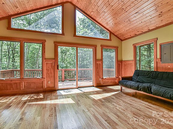 This cozy, quaint and private 1 bedroom/studio is the perfect getaway house. Since it sits on a gently sloping acre, this home has the potential to be expanded or you could live in it while you build another home. Great location: 20 minutes to downtown Asheville and 20 minutes to the airport, yet you feel a million miles away from it all. Packed with features: granite countertops, recently refinished hardwood floors (just buffed again!), vaulted pine wood ceiling, Genweld Windows, custom cabinets in kitchen & bath, tiled shower and lots of gorgeous wood trim. Sit out on your tranquil back deck and sip on your morning coffee while listening to the sounds of silence. First third of road is state maintained. Rest of road has formal RMA. AND road maintenance and improvements scheduled work being done mid to late November (these road repairs have already been paid in full). NOTE: this property is cross referenced with MLS#4178965 under land.