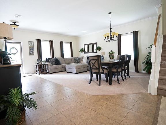 - Interior Features: Ceiling Fans(s), Eating Space In Kitchen, High Ceiling(s), Walk-In Closet(s), Crown Molding, Solid Wood Cabinets, Thermostat, Living Room/Dining Room Combo, In Wall Pest System, L Dining, Pest Guard System