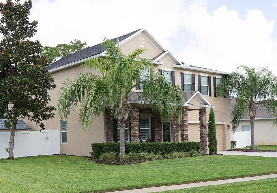 This stunning two-story home is on a water view/access lots in the Estates at the Trails neighborhood. Put your skiff or canoe in the lake behind this house and catch some amazingly big bass! Near Walker Elementary School and the Flagler Bike Trail and the Little Econ State Park. From the open-concept, large island, two sink kitchen to the spacious Princess Suite with its own in-bedroom bath, there is plenty of room for the everyone to enjoy. Spacious back pool deck with covered patio and a beautifully unique stone coping and waterfall pool that blends perfectly with the conservation area and lake view. Exceptionally well maintained with recent upgrades that include new roof, newly painted exterior, new pool pump and filter, and new hot water heater. This one will go fast!