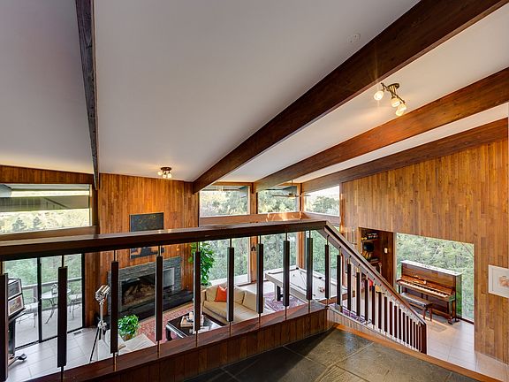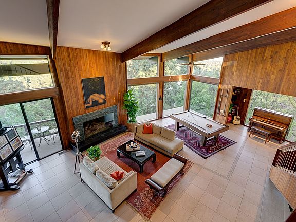 Dramatic walls of glass offer expansive views of the hills of Annandale, golf course below, San Gabriel's mountains in the background, treetops, and city lights beyond. This remodeled Modern affords privacy & views from nearly every room. Living Room w/high ceiling and large fireplace w/slate surround. Generous formal dining room w/viewing balcony access; perfect for entertaining and al fresco dining. Gourmet kitchen w/Cherry stained cabinets, black granite counters, stainless steel appliances, and breakfast area w/fireplace. A small office or pantry, and 1/2 bath complete the main level of the home. The 2nd level consists of 4 bedrooms, 3 baths, including an oversized Master BR suite w/expansive closet, fireplace, full bath and wonderful views. Not included in the home's s.q. is a office/smaller media room w/HW floors, and a bonus guest suite w/a 3/4 bath close to the pool & spa. Newer HVACs (x2), painting, expansive decks for entertaining. Nearly 4500 s.f. of interior space.
