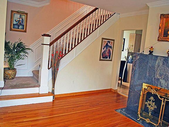 Beautiful single family Colonial with great curb appeal and open floor plan on one of Hasbrouck Heights most desirable streets. White brick front with two-story white columns. First floor features high ceilings, entry foyer with marble floors, extra-large inviting living room with large windows and skylights, and granite wood-burning fireplace. Formal dining room has beautiful crown moldings. Modern eat-in-kitchen is custom build, with build- in desk, granite countertops, new stone backsplash and additional skylight above the eating area. Den/office could be an extra bedroom. First floor is completed with full bath, back foyer, and a back door leading to a patio. Second floor features three bedrooms and a full bath. Extra storage with pull down stairs in the attic. Finished basement offers large family room, additional guest room, and a laundry/utilities room. Fully renovated home features Anderson casement windows, hardwood floors, and beautiful ornament moldings. Plenty of natural light and sun. Extra-long 50x132 level lot, fully fenced-in and park like. Detached shed/garage with pull down stairs to a second level for extra storage. Convenient location to shops, elementary school, middle and high school. NYC bus at corner. Neighborhood Description Convenient location to shops, elementary school, middle and high school. NYC bus at corner.
