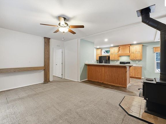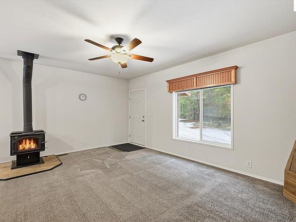 Storage shedInviting open-concept layoutCozy wood stoveAbundant natural lightComfortable primary bedroom suiteVaulted ceilings