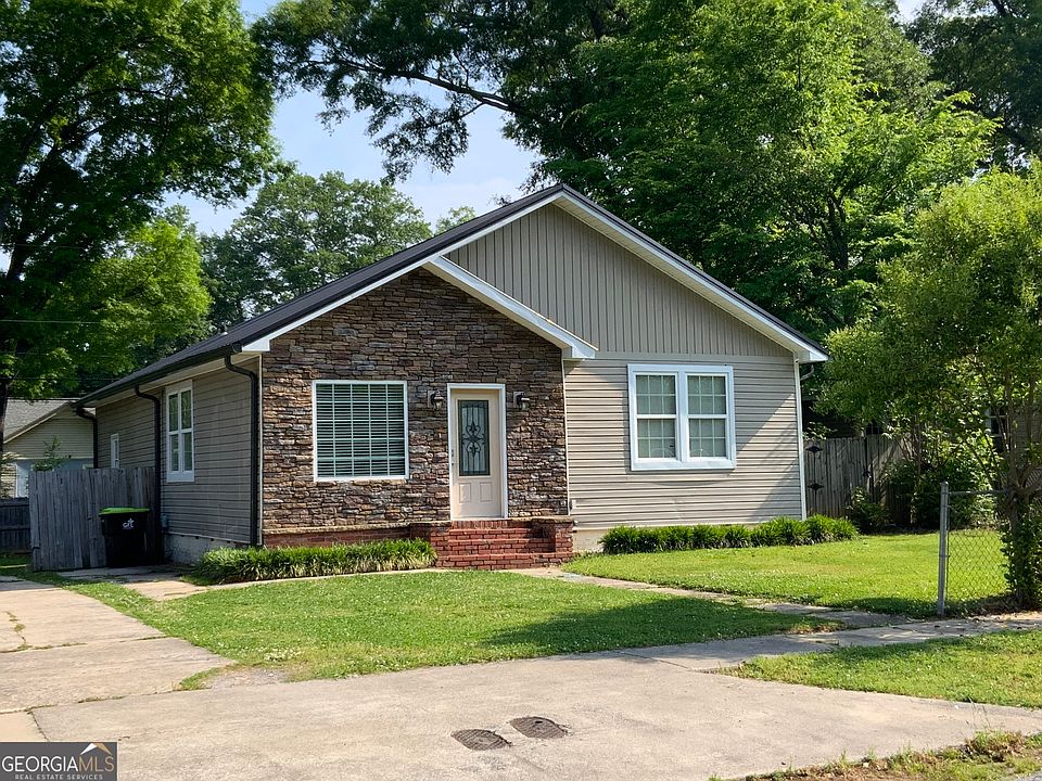 Welcome home to this 2 bedroom, 2 bath move in ready home located in the ever growing Rockmart area. You are walking distance to parks, restaurants, shopping and so much more. This home has large rooms with high ceilings that create lots of space. The master bedroom has a large en suit and closet. Off of the spacious kitchen is a den with a brick fireplace that offers room for entertaining guests or a fun room for the children. There is also a large storage building in the backyard that is partially fenced with privacy fencing. Don't miss out on this one!! Schedule your viewing appointment today!