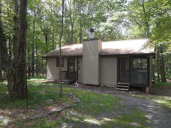 BEAUTIFUL LAKE IN THE CLOUDS! 75 ACRE LAKE, PLUS 2 SMALLER LAKES MAKE THIS A TRUE REFUGE! Cottage home is small but mighty! Enjoy the sounds of nature on the large screened porch, or use the wood burning insert in the brick fireplace to warm the whole place in the winter! Large 2 car garage, matching shed, PLUS 4 LOTS give you all the privacy you need! JUST YOU AND NATURE! The lake has great bass fishing, a beautiful beach area, tennis courts, playground, bocci ball, and a nice picnic pavillion. Don't miss the community gatherings - so friendly and welcoming! 15 minutes to Lake Wallenpaupack, Promised Land State Park, and all the Pocono Water Parks and ski mountains - Ski, Play, and Stay!