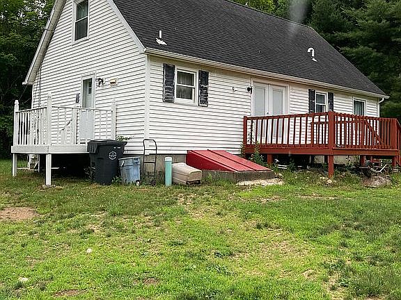 Cape style home featuring 3/4 bedrooms and 1 full bath. Main level bedroom and full bath. Additional office/bedroom on main level just with no closet. Two large bedrooms up. Country kitchen with french doors leading out to the rear deck. Nice sized living room with picture window. Level lot. Drilled well put in 2 years ago. Curtain drain added to improve drainage. Walk to Beaver Brook State Park and the Airline trail for hiking, biking, and fishing. Right off of Rt. 6 for easy commuting.