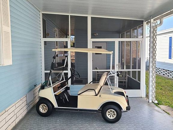 For More Information, Please go to the Virtual Tour Link. Located in Senior Park with Monthly Lot Rent of $561. NICE AND CLEAN, 1512 SQ. FT. 2 BEDROOM, 2 BATHROOM HOME WITH CLUBCAR GOLF CART INCLUDED! ENTERTAIN OR JUST RELAX WITH A GOOD BOOK IN THE DEN, SUN ROOM OR SCREEN LANAI. A SKYLIGHT IN THE WHITE KITCHEN BRINGS IN PLENTY OF NATURAL LIGHT. SUPER 5 FT. WIDE HALLWAY! HOME IS MOSTLY FURNISHED WITH AMPLE STORAGE THROUGHOUT. LOCATED ON PERIMETER OF PARK, NO NEIGHBORS BEHIND. **Roof 2017, Newer Water Heater. LOVELY LAKE JULIANA LANDINGS SURROUNDS A 1200 ACRE LAKE. ENJOY THE SUNSETS OVER THE LAKE IN THIS GATED SENIOR COMMUNITY (80/20 Rule). AN ACTIVE SOCIAL CALENDAR OFFERS THE RESIDENTS MANY ACTIVITIES TO ENJOY. 2 PETS ALLOWED WITH BREED RESTRICTIONS. **NO UTILITIES INCLUDED IN LOT RENT. SCREEN LANAI 11.5 x 13.5 Located off the Carport with Double Entrance Doors to Store Your Golf Cart. Patio Table Set and Grill. LIVING ROOM 13.5 x 17 Spacious Room with Large Window Bringing in Plenty of Light! Loveseat, Chair, 3 End Tables and 2 Lamps. Curio Cabinet, 2 Bookcases, Glider with Ottoman, Faux Fireplace and Chair (recliner not working). Ceiling Fan with Light, Window Treatments and Berber Carpet. DEN 9.5 x 13 Enter from Living Room Through Double Doorway. Sunny with 2 Walls of Windows! Coffee Table and Upright Freezer. Ceiling Fan with Light, Window Treatments and Berber Carpet. SUN ROOM 9.5 x 13.5 Enter from the Den Through Sliding Glass Door. Built In Cabinet, 2 Chairs and Coffee Table. Full Glass Door to the Carport. Ceiling Fan with Light, Window Treatments and Laminate Flooring. DINING ROOM 9 x 9.5 Open to Living Room and Kitchen. Wood Table with 4 Chairs. Ceiling Fan with Light. Window Treatments. Berber Carpet. KITCHEN 9 x 10.5 Clean, White Cabinets with Glass Back Splash. Skylight Brings in Plenty of Sunlight! Double Stainless Sink, Kenmore Elite Refrigerator with Ice Maker, GE Range, Whirlpool Dishwasher and Built In Microwave. Disposal. Pantry. Window Treatments. Vinyl Plank Flooring. HALLWAY Hall is 5 Feet Wide with Berber Carpet. MAIN BATHROOM 5 x 7.5 Single Sink Vanity with Tub/Shower Combination. Storage Cabinet. Skylight. Linen Closet. Vinyl Plank Flooring. MASTER BEDROOM 12 x 18.5 Enter this Spacious Bedroom Through French Doors. King Bed Mattress Only. Dresser, 2 Bedside Tables and 2 Lamps. Hutch and Console. 3.5 x 8 Walk In Closet. Ceiling Fan with Light. Window Treatments. Berber Carpet. MASTER BATHROOM 7.5 x 9 Single Sink Vanity with Make Up Vanity and Mirror. Walk In Shower with Support Bar. Storage Cabinet. Skylight. Linen Closet. Vinyl Plank Flooring. GUEST BEDROOM 10 x 13 Twin Bed, Bedside Table, Desk, Chair and Filing Cabinet. 3.5 x 5 Walk In Closet. Ceiling Fan with Light. Window Treatments. Berber Carpet. LAUNDRY ROOM 7 x 8 Estate Washer and Dryer with Shelving for Storage. Storage Closet. Located off the Hallway with Door to the Screen Lanai. Vinyl Flooring. STORAGE SHED 8.5 x 13.5 Nice Size Shed with Shelving for Storage. Park Amenities: Fishing, Boating, Marina, Heated Pool, Recreation and Banquet Hall, Library, Billiards, Darts, Bocce Ball, Shuffleboard, Dances Dinners, Bingo and Clubs. Lake Juliana Landings is Located in Auburndale Florida just off 1-4, halfway between Tampa and Orlando. Information stated in description of home and park is not guaranteed. Responsibility for obtaining current fees, rules & regulations associated with the community/park/home is the Buyer's responsibility. Home sold 'As Is' without warranties or guarantees by seller and/or Snowbird Living. Home and Room sizes are approximate and not guaranteed.