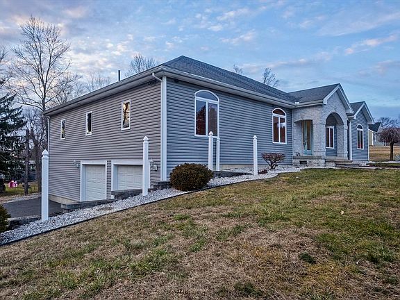 Welcome home for the NEW YEAR! This unique custom built ranch has it all Enter to find gleaming hardwood floors through out the dining room, office and large living room. The kitchen offers newer appliances (last 3 years), and ample counter space for cooking and entertaining. The right wing offers 2 bedrooms and a full bath. On the left wing you will find one more bedroom as well as the primary bedroom The primary offers an ensuite with a jetted tub and separate shower, a walk in closet and access to the deck perfect for enjoying your morning coffee Head down to the finished walk out basement perfect for a game room or an additional living space The basement also offers a full bath with heated floors and waterfall shower head, a wet bar and a cold storage perfect for storing wine and access to the attached 2 car garage. Head outside to find the additional detached 2 car garage with electric and additional storage area. Newer heating system 2 pellet stoves and much more don't miss it!
