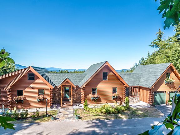 23 acres & Mountain Views! Refined rustic style, attention to detail, and sweeping views of Mount Washington, Cranmore, Kearsarge and the Moats combine to create this elegant and versatile home. Nestled at the top of 23-acres, and fondly known as Ravenscroft, this 3 bed/3 bath 3300 sq. foot lodge has been thoughtfully renovated throughout and lives like a newly built w/ two additions and system updates. Inside you’ll find a flexible layout focused on one level living and designed to showcase the views and host a crowd. The new custom kitchen features Cabico cabinets, granite counters, stainless appliances, and mountain views. The living/dining room is ready to entertain with views of its own, a fireplace with stone hearth and a custom coffee bar with sink and cooktop. Above sits a spacious, airy loft. The primary bedroom with walk-in closet and the two guest rooms are each near one of two baths and the laundry. A sunroom with streaming natural light completes the package. AC splits keep the home cool in the summer. Pine floors stretch throughout with slate and tile in the right places. The walk out lower level has a large family room with a three-quarter bath, a second laundry and storage. The two-car garage offers storage above. Window boxes, attractive lighting and stone facades adorn the front. A screened porch, covered porch and deck can be found facing the mountains out back. Ideally located, this property is just minutes from lake life and an easy drive to shopping, di
