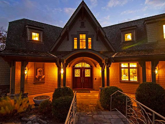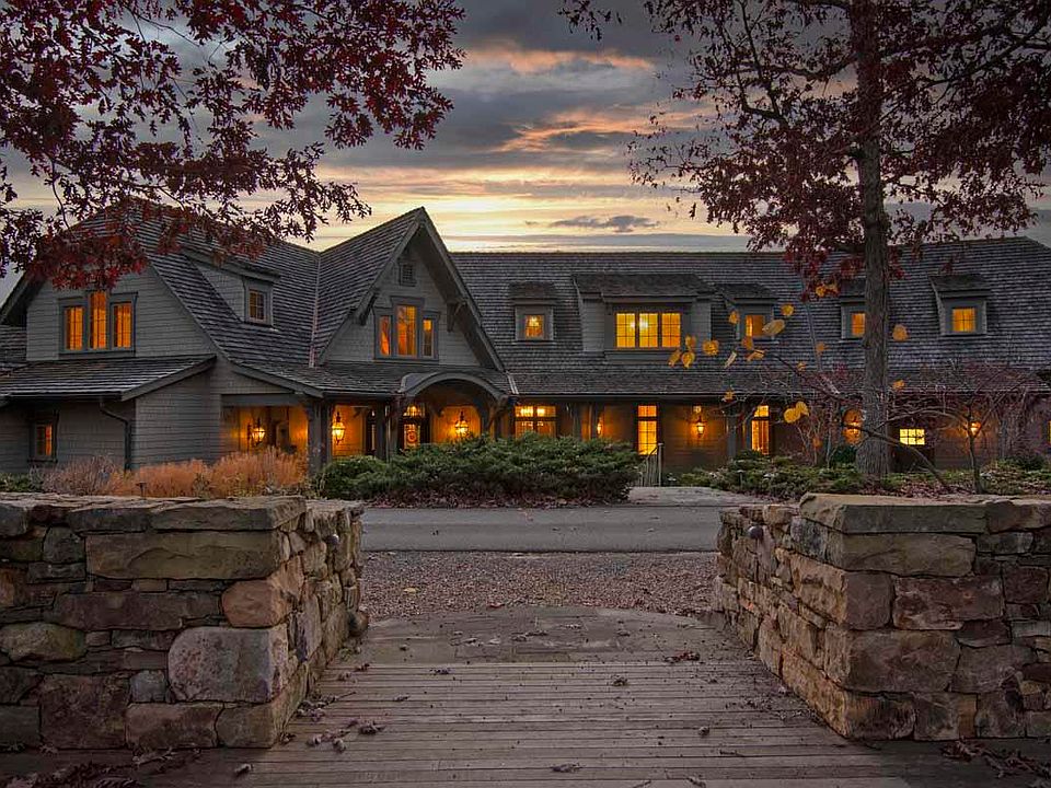 Majestic three-level, 10,000+/- square-foot home in Greenbrier Sporting Club. Private 22-acre ridge with panoramic mountain views, close to hotel. Spacious and impressive, this grand home constructed over several years by local master craftsmen has a seemingly endless list of custom touches and high-end features, from its waterfall entrance to its multilevel decks, mahogany pub and plush home theater. Lodge-style in architecture, the home features beautiful marble, tile and exotic woods, and is both a showplace and a comfortable retreat.