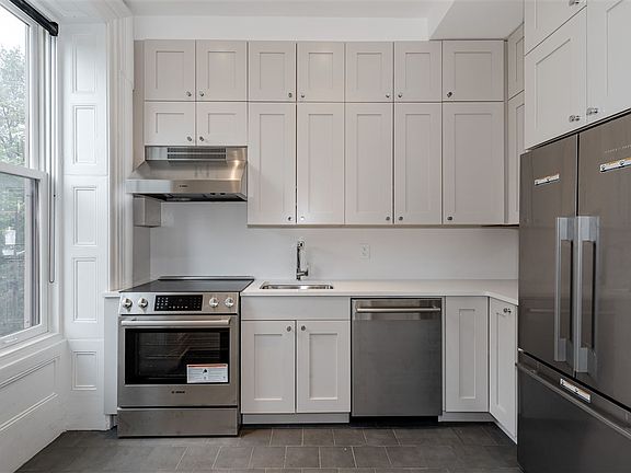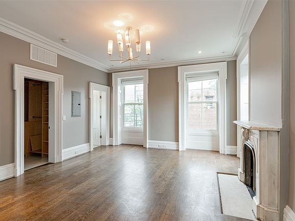 Rent in one of the most prestigious brownstones of downtown Jersey City. This historic corner building on Van Vorst Park is fully renovated with modern finishes while retaining the historic details including decorative fire places, this one bedroom one bath is appox. 1,100sf of living space. Centrally located on the corner of Montgomery and Barrow, overlooking the park, this home has high ceilings and shines with light pouring in on 3 sides. The rooms are large and the living space allows for plenty of room to relax and entertain with enough room for a dining area. Equipped with Bosch + Fisher Paykel appliances, marble finishes, central AC, in unit washer/dryer, radiant heat in the bathrooms, it's also close to the path making this an oasis and commuters dream, not to mention feeling safe in a small friendly building! NO BROKER FEE!