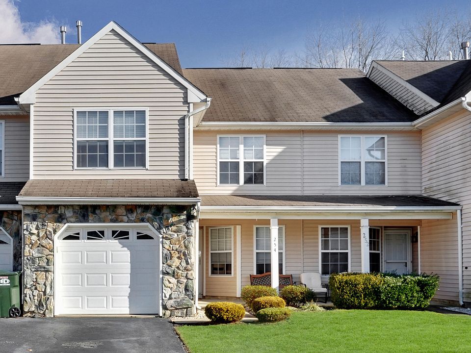 Beautiful, Fee simple, Townhome located in desirable Ramtown section of Howell. Home is located near lovely horse farms, yet close to the Garden State Parkway, excellent schools and major shopping areas- a commuter's dream! This well maintained home is move in ready with newly painted walls and newer appliances. Includes updated Eat In Kitchen with added cabinet space, large family room that can be used for extra living space or additional dining. Upgraded blinds between the glass back door opens to a large private backyard. Three spacious bedrooms, including a Master bedroom with vaulted ceilings and an over sized master bathroom. Convenient second floor laundry room with newer washer and dryer. Call to get pre approved today!