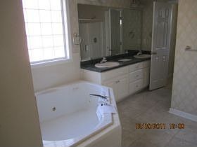 This home features a greatroom with fireplace, separate dining room, separate laundry room, jetted tub and double vanity in the master bath, walk-in closets, alarm system, and all electric utilities. There is also a covered patio and 2-car garage, and all kitchen appliances are intact. All prospective buyers must pre-qualify with Bank of America regardless of where loan is obtained, or provide proof of cash on hand to close.