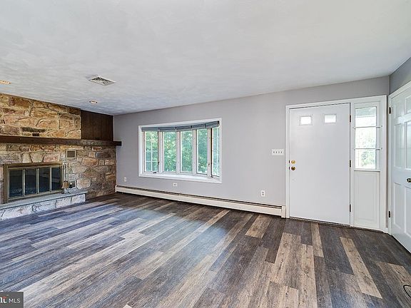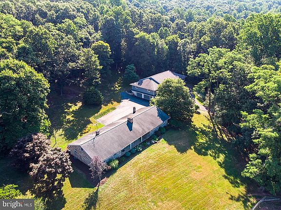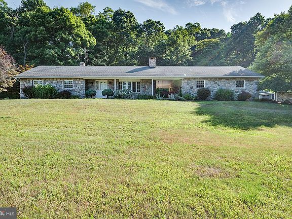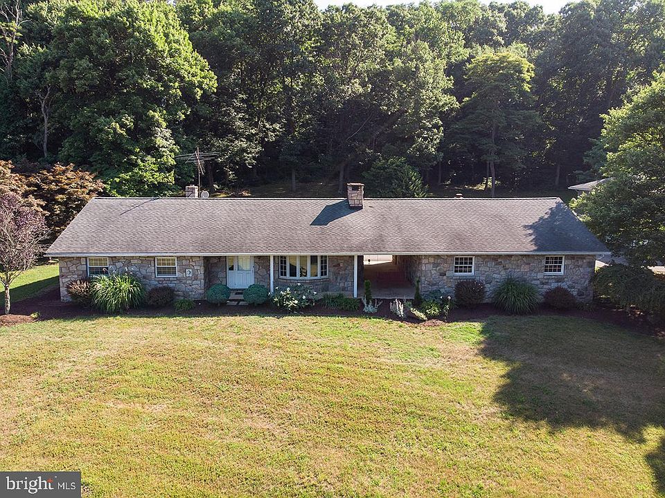 SUBSTANTIAL PRICE ADJUSTMENT! Magnificent, custom built, all stone, 3 bedroom, 1.5 bath, ranch style home, on 3.93 acres, with an incredible 84'X36' detached, 2 story, modern 10 bay garage/bank style barn that could have so many uses! This property immediately adjoins 1600+ acres of pristine forest and trails, known locally as "The Horseshoe Trail", owned and maintained by the Birdsboro Municipal Water Authority, and is open for public recreation. Both house and detached garage have newer 30-year dimension shingle roofs. Property has a pressure treated gazebo on the grounds, and the covered front porch swing, overlooks the neighboring horse pasture and horses below. This home has a large eat, in kitchen, with dark oak cabinetry, tile flooring, pass through window to the living room, and a bay window in the spacious eating area with a wonderful back yard view. The adjoining living room boasts brand new, grey, weathered barn colored Luxury vinyl plank flooring, that extends back the hallway and into all three bedrooms. The living room also has an amazing real field stone fireplace, with a blue stone hearth and a barnwood beam style mantle, with an awesome valley view out of the front bow window. The primary bedroom has ample wall closet storage, with a convenient on-suite powder room. The other two bedrooms are a very nice size, both with wall closets, LVP flooring, and are served by a very nice sized family bathroom, with shower/tub combination, and a convenient adjoining laundry. The lower level has a very large 26'X25' family room/recreation room, with a wet bar, brick wood burning fireplace, and a wood stove was left by the previous owners that could easily be connected. There is a large unfinished side of the basement with a water circulated, hot water boiler, and summer/winter hot water tank, for on demand hot water all year long. There is also a set of Bilco doors that lead up from the unfinished side of the basement to the rear yard. Across the covered breezeway from the kitchen entrance is a heated 2 car garage. This home would truly be a perfect fit for a motorhead, car collector, or a collector of any kind who was looking for a private property in the woods! The detached garage and barn is very special and there aren't many like this in the tri-county area!!!