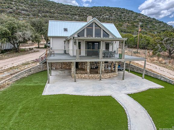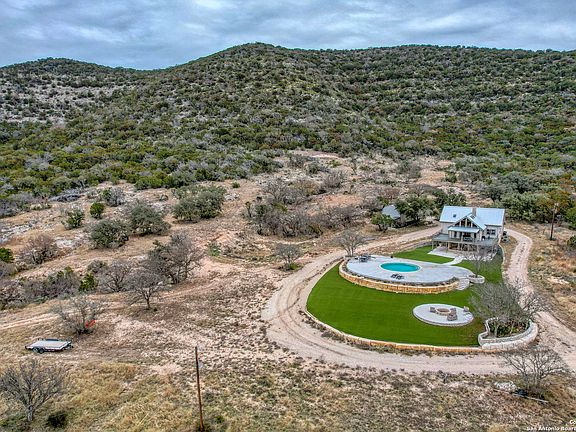 Heaven on Earth now exists in Leakey TX. Situated on 42 acres with a range of topographies including approx.. 600 Feet of West Prong of the Frio River, mountain terrain, Pecan bottom flats with 200 year old Pecan trees, wildlife galore and so much more to even list. Wonderfully situated with unbelievable Westerly views of the entire area sits a well designed completely renovated 2-story that boasts 4 bedrooms and 3.5 full baths with new plumbing, HVAC, electrical and reworked high pressure water well with a 5 stage reverse osmosis water filtration system. Large 2nd floor porch with views over the custom built swimming pool completely surrounded by turf grass and fire pit where a lifetime of memories can be made, not to mention tremendous views of the West Texas Hill Country. Included is approx.. 560 Sq ft shop/storage room located within walking distance of the house to store your ATV, tractor, Summer supplies and many others. Completely custom furnished with large mirrors/art work that make you feel like you're staying at a 6 star resort. Private, quiet, peaceful, end of the road ranchette that will make you the envy of the town for generations. Make your appointment today to see this gem before someone else does!