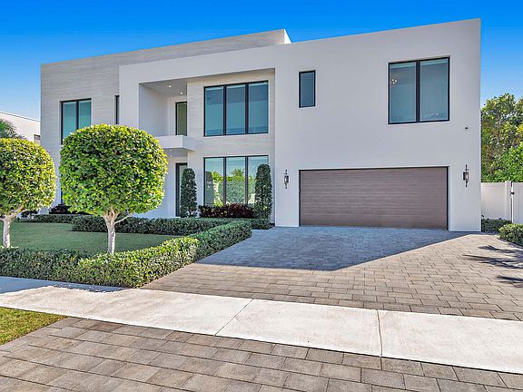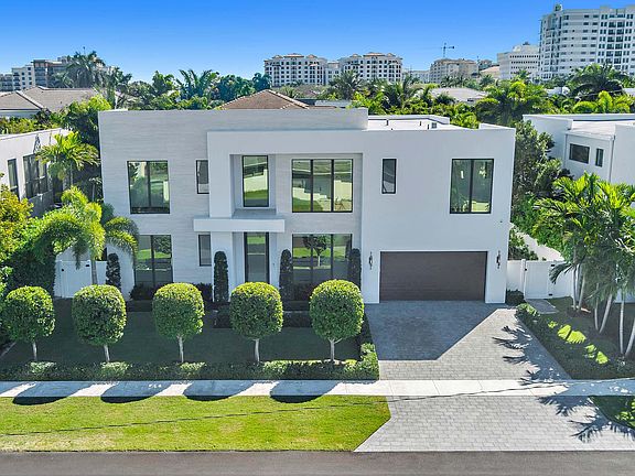 Built in 2021, this incredible contemporary residence is located in Boca Villas just one block from the famed Mizner Park and one mile to the beach. Features include volume ceilings; state-of-the-art AV system; designer touches throughout; and resort-like grounds to create an oasis for residents and guests alike. Boasting almost 6,500 total square feet, the five bedroom home offers spacious living areas; fabulous kitchen with snack bar seating; custom wine storage; and floor-to-ceiling windows and sliders that provide natural light and stunning views of the tranquil pool and grounds. The primary suite provides a private retreat with sitting room with morning bar; dual closets; spacious bathroom; and dedicated washer and dryer. FEATURES