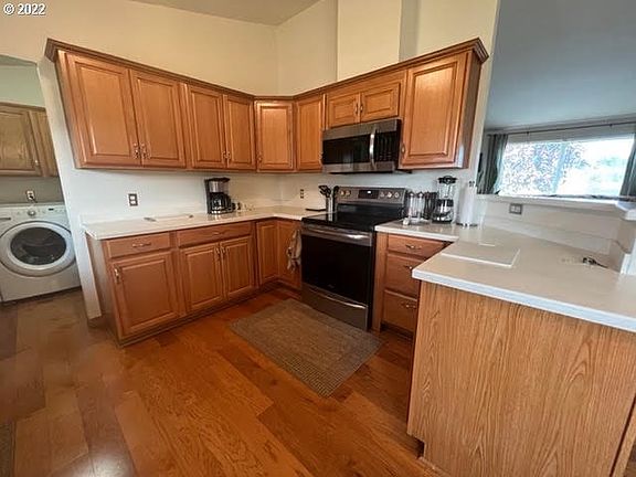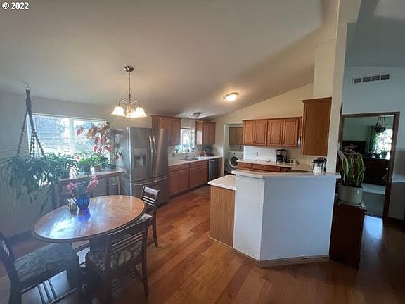 • Features: Dishwasher, Microwave, Free Standing Range, Vaulted Ceiling, Wood Floors