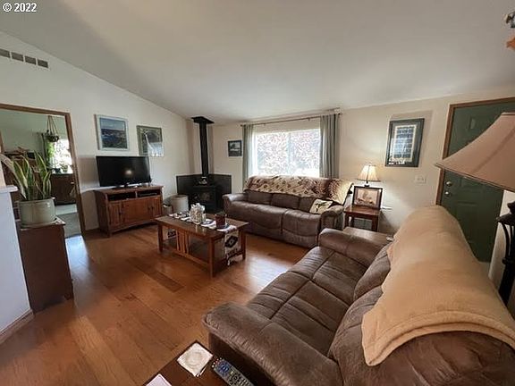 • Features: Vaulted Ceiling, Wood Floors, Wood Stove