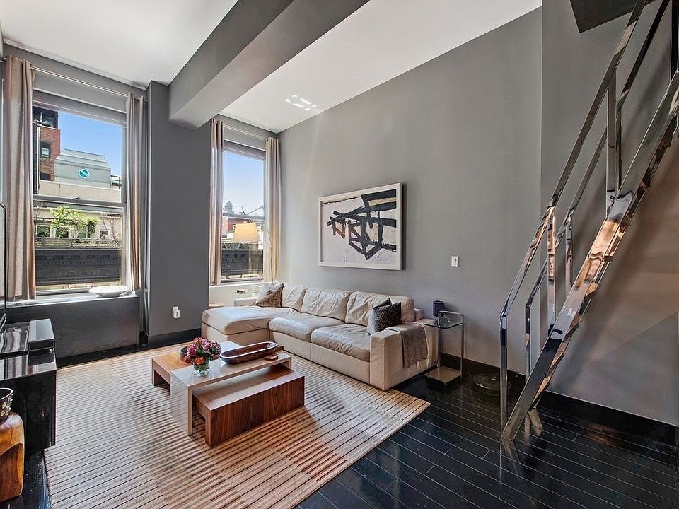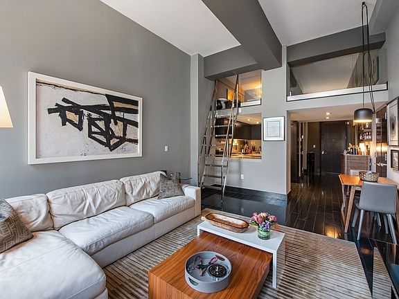 No Fee! South Facing, lots of light, soaring 14 foot ceilings; this fantastic apartment features 1 bedroom, 2 baths, with a home office PLUS a loft. This is truly a dramatic home located conveniently in the Flatiron/Gramercy area close to Union Square. The space stands out using distinctive materials like polished, warm woods and metals. The baths and kitchen are a harmonious blend of durable organic materials like stone and wood with innovative chrome fixtures. The look is sophisticated yet warm and accessible. Stainless steel appliances with sleek stone countertops complete the kitchen. There's a washer/dryer and dishwasher too. This is a full service building close to everything. It's a fabulous apartment! Sorry, no pets.