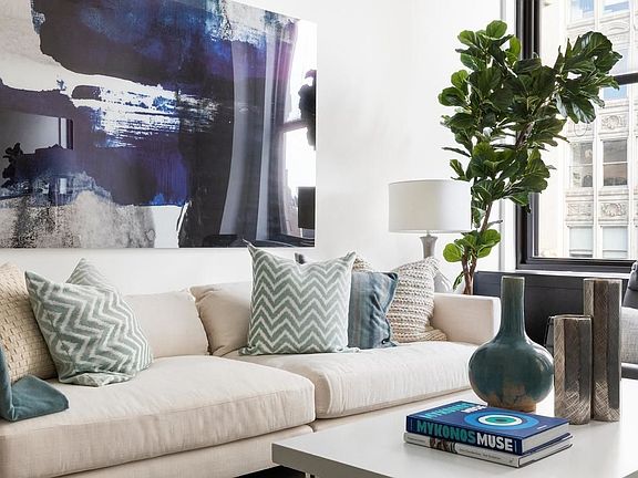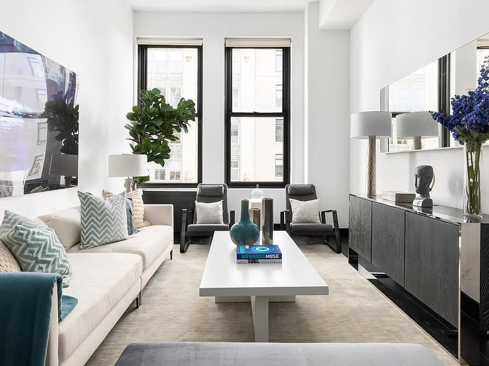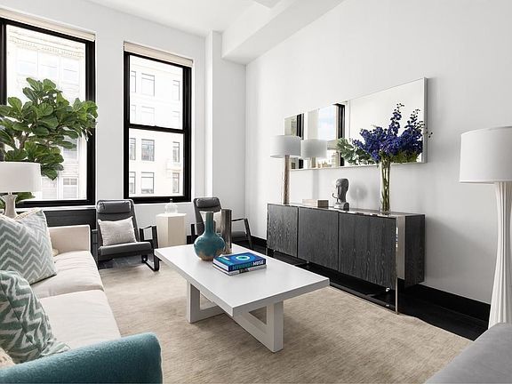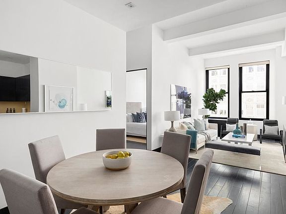 Situated on one of the higher floors of the building, this sun drenched split two bedroom is truly well done. Nestled in the heart of Gramercy, this sprawling 2 bedroom home boasts approximately 12.8 foot ceilings, two large bedrooms, a bright and welcoming living room, separate dining area, open kitchen, and two full bathrooms. The spacious master bedroom offers generous storage, as well as an en-suite master bathroom with a tiled, stand up shower, custom wood vanity and Kohler fixtures. The second bathroom is smartly finished and includes a deep soaking tub. The kitchen features custom wood cabinetry, top of the line appliances, range and a washer/dryer. This unique layout is ideal for hosting, as it allows for a dining area separate from the living room and bedrooms on opposite sides of the home. 254 Park Avenue South is a 1913 Beaux Arts Building, reimagined with modern finishes and centrally located in downtown Manhattan at the nexus of several of the best neighborhoods. There is a full time doorman, a game room with a pool table and poker table, and a gym, all situated in one of the most coveted neighborhoods in New York City with some of the best eateries that New York has to offer.