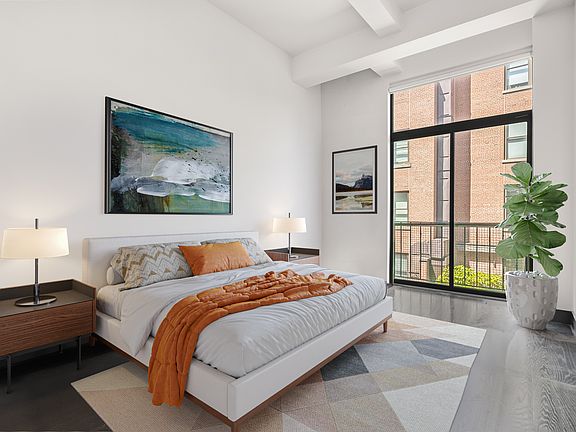 11P is a beautifully designed 1-bedroom loft apartment in a luxury building located in Flatiron/Gramercy neighborhood. The home is a generous 730 sqft and boasts 12-foot ceilings, espresso hardwood floors, and floor-to-ceiling windows that overlook the building's courtyard providing pin drop quite living. The kitchen is equipped with high-end stainless steel appliances from Bosch and Liebherr, which complement the sleek stone countertops and custom cabinetry. The bathroom features a spa-like feel with its high-quality fixtures and rich finishes. The use of polished wood and metal throughout the apartment creates a cool, urban vibe. There is also plenty of closet space, central air conditioning and heating, and a washer/dryer in the unit. The building itself is a Beaux Arts style masterpiece that has been meticulously restored. It features a modern chic interior design by Charles Allem, with durable organic materials of stone and wood and innovative chrome fixtures. Residents enjoy a 24-hour doorman/concierge service, a fitness center with cardio and weight-lifting equipment, and a resident lounge with games like poker and pool. The location is unbeatable, situated in the heart of the vibrant Flatiron/Gramercy neighborhood, just minutes away from Union Square, Madison Square, Chelsea, Gramercy Park, and Greenwich Village.