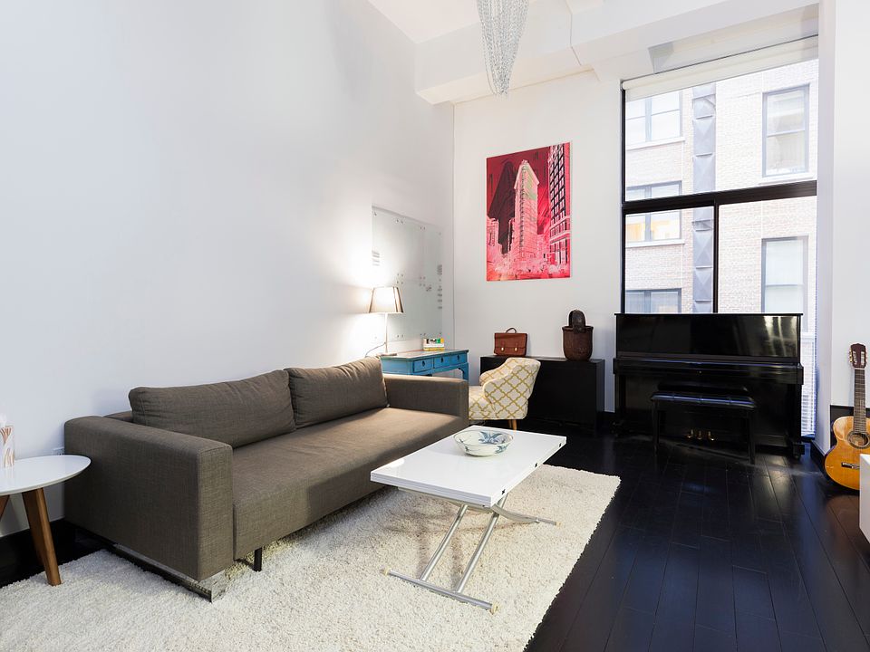 Live the hi-life at 254 Park Avenue South. This fantastic building offers a 24-hour Doorman, fully equipped resident fitness center, a luxurious lounge including billiards table and a live-in super. Move right into this loft studio which is accentuated with 14 foot high ceilings and tons of lighting including a gorgeous hanging chandelier which drapes the space in elegance. This very unique apartment is a duplex with a stand-up loft bedroom which has its own walk in, completely outfitted closet. Pin drop quiet you will love the deep dark wood floors that lead to a great mix of industrial chic and modern elegance. An aluminum style staircase takes you to the bedroom while extra closet spaces are on the main floor for your washing machine and storage needs. To complete the space a luxury bathroom and kitchen are adorned in dark wood and stainless steel with top of the line appliances. The location of this apartment could not be better. You are situated at the edge of Gramercy Park, Flatiron, and Union Square where there are no end to choices for all of your restaurant and shopping needs. In addition there are many transportation options within a few blocks. Please contact us today for a private viewing.
