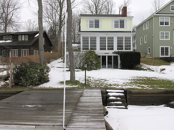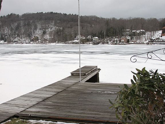 Enjoy all day sun on the sought after east shore of Highland Lake. Beautiful plantings enhance this charming four bedroom, 3.1 bath year round home renovated in the 70's by today's owners and located on a quiet side road. Fine details and planning were used along with good mechanical and structural components. The 24 ft living room with fireplace has French doors opening to a spacious sunroom which overlooks the yard and waterfront and has access to a deck. The eat-in kitchen has a bay window and ample cabinetry while the dining room steps away also has a bay window and built in hutch. A pretty custom built staircase leads to four nicely sized bedrooms, all with lake views, gleaming hardwood floors and two full baths. The lower level walkout offers an attractive family room with another fireplace and access to a brick patio. Additionally, there is a full bath, laundry room, and storage area for summertime equipment. A two car garage with loft included! The large 18 X 12 dock has a stabilized sitting area for waterside entertaining, ample room for boat dockage and steps into the water for swimming. Beautiful views and sunsets, quiet time on summer Sundays for sailing & paddle boards, August boat parade and fishing tournaments. This 444 acre lake is noted for its clean water . Connected to town sewer and water . Just 3/4 hr to Hartford. The Berkshires are very close by as well as Infinity Music Hall, Warner Theater. 2 hrs. to NYC and 45 min. to airport.