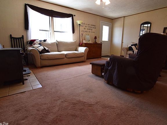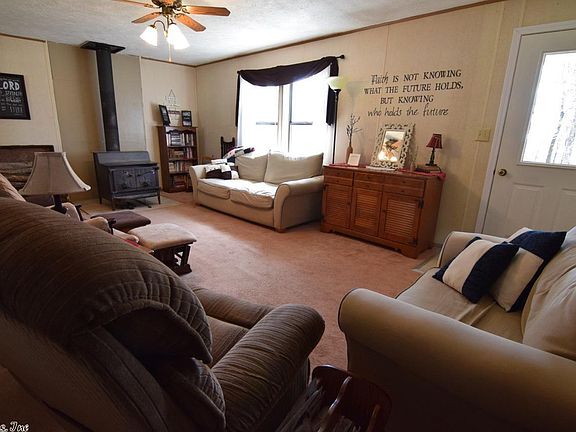 Peaceful country living on partially fenced 9 wooded acres. Covered front porch and deck welcome you to this 3 bedroom, 2 bath 1336 SF home with double-paned windows, open floor plan and woodburning stove. Master suite separate; laundry room. Detached 20' x 30' garage / shop for the handyman. Exceptional fenced garden area (approx 50' x 50') with rich soil. Large year-round pond and hardwoods. This would make an ideal retirement or starter home.
