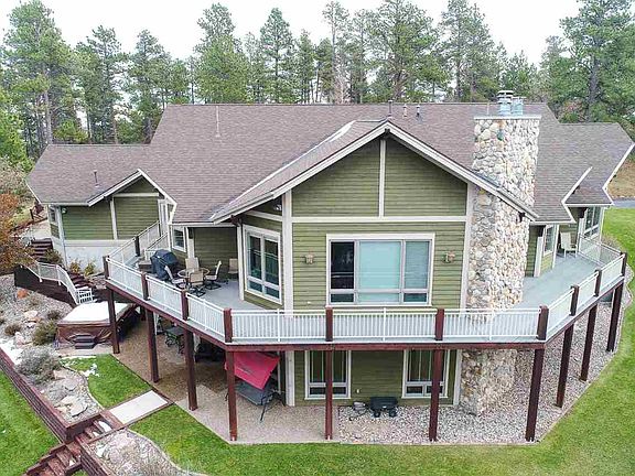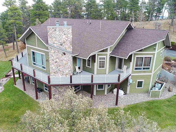 For more information, please contact listing agents Scot Munro 605-641-6482 or Heath Gran 605-209-2052 with Great Peaks Realty. Sitting on 5.48 acres with expansive views of the Black Hills, this thoughtfully designed home offers a spacious layout throughout, high ceilings, chef’s kitchen with granite countertops and a walkout to the covered front porch. Formal dining room that flows into the bright living room space with a gas fireplace, access to the amazing wraparound deck to enjoy the beauty of the views beyond and the well manicured private backyard. Enjoy the master ensuite on the main level with a relaxing master bath with heated tile floors, vintage soaker tub, walk-in tile shower and large walk-in closet equipped with built-in shelving. Basement offers a gorgeous rock fireplace, spacious family room with a custom wet bar set up for all your entertaining needs. Large windows to frame the views, plenty of space and privacy of this home. Basement also features a private guest suite and bedroom 4 & 5 sharing a jack-and-jill bathroom. Timeless design and beauty inside & out! Call today for your private tour.