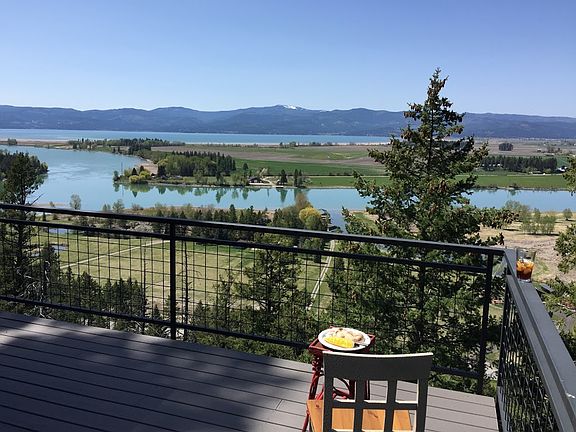 This is an amazing property in Bigfork Montana on a peak with breathtaking views of the Flathead river flowing into Flathead Lake.