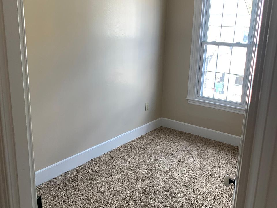 2 nd floor spacious 2 bedroom apartment, with office/bonus room & full attic, shared use of side yard, and off street parking, freshly painted interior, and new carpet . Central Air , gas heat, refrigerator and stove included. No pets allowed Owner pays for water sewer and trash, tenant pays for gas electric and Cable