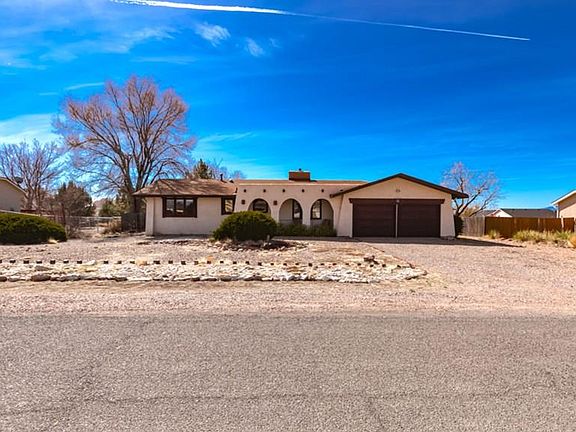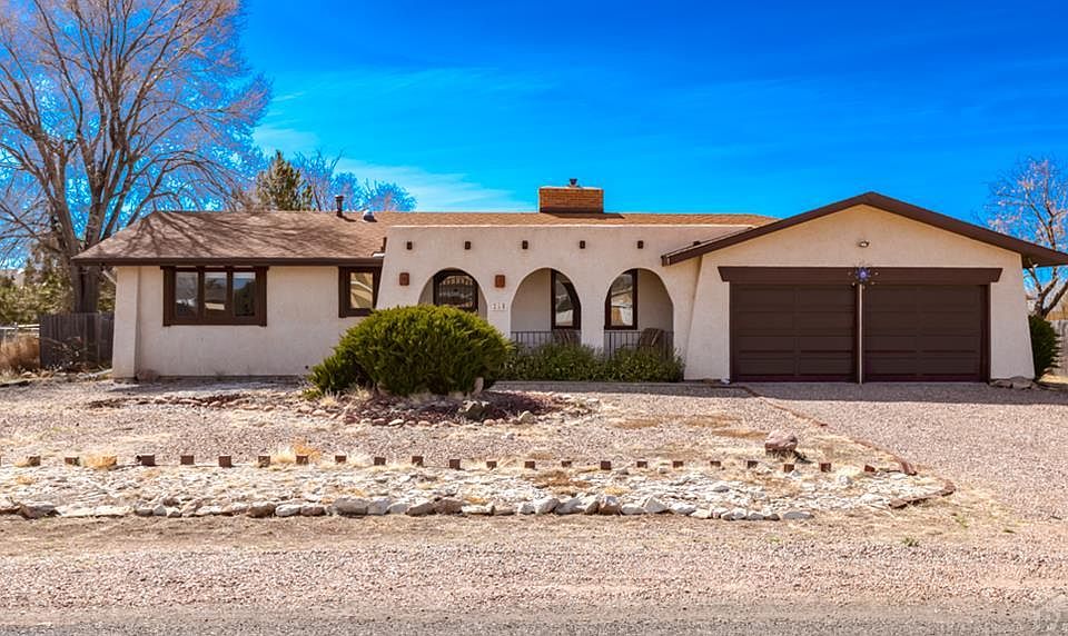 Great ranch style home in the Desert Hawk Golf Course area. This home has great curb appeal with covered porch and xeriscape landscaping. New wood laminate floors throughout. Large living room and separate dining and kitchen area. There is a beautiful fireplace in the large dining room. Updated paint and light fixtures. The Master bedroom is very large and has a walk in shower with new custom tile, cabinet, sink and light fixture. The second bedroom is a good size as well with new wood laminate floors. There is a full bath with tile floors and tile surround. Large laundry room with plenty of room for folding and extra storage. Outside is a large back patio, fully fenced backyard, trees, grass and mature bushes. The shed stays. Newer furnace and central air unit, hot water heater and clean out to street all in 2014. Hot tub is a 6 person and will be included in the sale. Unfinished basement of 900 sq ft for storage or to finish!