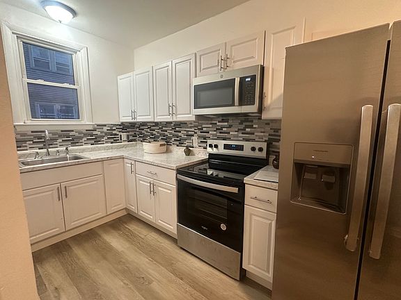 This inviting 2-bedroom apartment, situated on the first floor, offers convenience and accessibility, making it an ideal choice for anyone seeking a comfortable living space. With generous natural light streaming through large windows, both bedrooms provide a peaceful retreat. The open-plan living area seamlessly connects to the kitchen, creating an ideal environment for relaxation and entertaining. The kitchen is equipped with essential appliances and ample counter space for optimal functionality. Included heating ensures a cozy atmosphere throughout the colder months, enhancing the overall comfort of the home. Located in close proximity to public transportation, shopping, and parks, this apartment embodies a perfect blend of convenience and contemporary living, Landlord pays for heat, tenant is responsible for electric