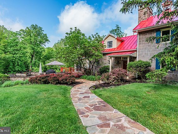 Nestled in a picturesque countryside setting, this charming 1838 stone farmhouse (with additions in approx. 1953 & 1991), stands as a testament to timeless elegance and rustic allure! As you approach the property, you’re greeted by the stately stone exterior, exhibiting warmth and character. A welcoming stone patio, surrounded by an artfully crafted stone wall, invites you to unwind and soak in the tranquility of the surroundings. The stewards of this home have taken great pride and care to preserve the home’s charm and character while tastefully updating it for modern comfort and convenience. Once inside, you’ll be immediately captivated by the inviting ambiance of the interior. The updated Kitchen with mission-style oak cabinets and premium appliances will certainly please the culinary enthusiast. The beamed ceiling adds a touch of rustic charm. Adjacent to the Kitchen is a bright and spacious dining area. For moments of relaxation and reflection, the beautiful Sunroom with stone wall accent offers panoramic views of the surrounding landscape, with deck access overlooking a serene pond. These combined spaces provide the perfect backdrop for morning coffee or evening cocktails. The expansive Living Room beckons with its handsome stone fireplace, wide plank floors and deep windowsills, all of lending to an air of authenticity and enhanced character which define this relaxing space. The primary suite boasts an ensuite bathroom with a walk-in tiled shower and balcony access, offering a spa-like retreat after a long day. Three additional bedrooms, each appointed with thoughtful details and modern comforts, and period-specific updated bath, ensure ample space for family and guests. Both the primary and hall baths are accessorized with heated towel racks. The finished, walk-out lower level provides additional living space with a Family Room featuring a 2nd stone fireplace and beamed ceiling. The Laundry Room area offers a full bath for convenient clean-up after a day of yardwork or gardening. An expansive 3-car garage with attic and full walk-out basement provides ample storage and workspace for the avid hobbyist or those who like to tinker. This remarkable property is truly a great place to call home!