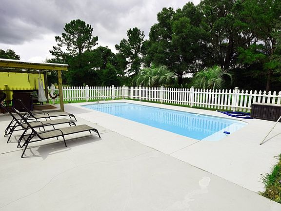 Beautiful 4 bedroom 2 bath home on 3 acres in the heart of Dixie! This 2308 Sq. Ft. home has a beautiful stucco exterior complemented by large live oaks and a circle drive that create the perfect country setting. Enjoy your home office, separate dining room, and large living room with vaulted ceilings. The open concept living space keeps this home connected and perfect for larger families and also has enough room for a kitchen nook. The large master suite has a jetted garden tub, walk in shower, dual sink vanity, and a large walk in closet. Across the home are 3 bedrooms with a shared hall bathroom. Exit thru the French doors onto a large patio area accompanied by an inground pool with a lovely grilling and entertainment area, all of which is completely fenced in. There are two sheds on this property for extra storage and a big yard for all of your pets. This home has everything you need and more. Call today for a private tour!