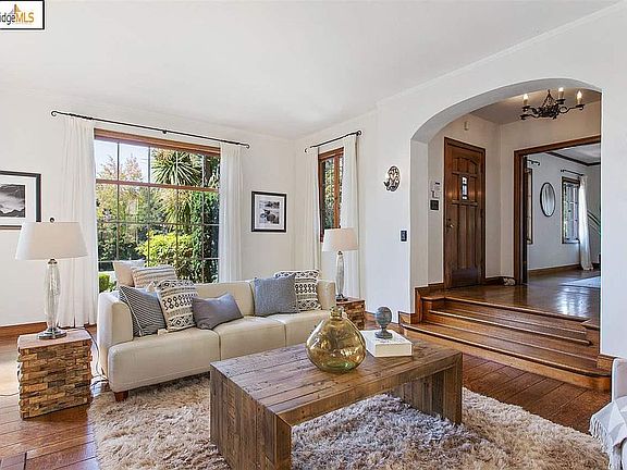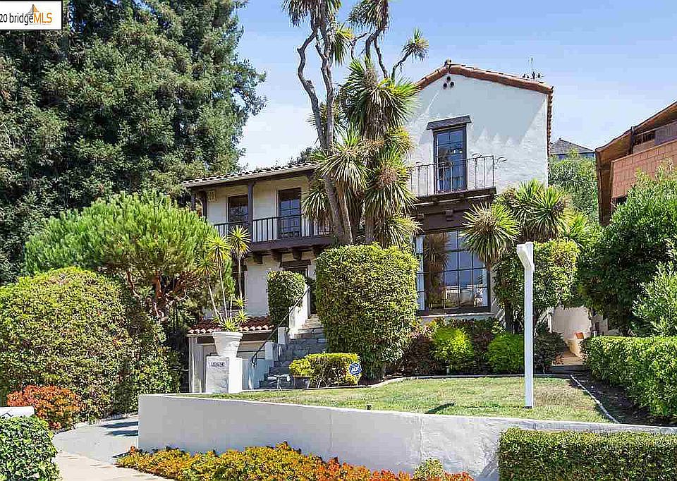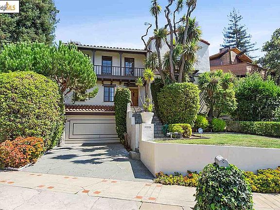Lovely Mediterranean with stunning architectural details and hardwood floors throughout. Light-filled living room opens through three glass doors to courtyard terrace for indoor/outdoor living. Formal dining room, spacious study/den, and five bedrooms on upper levels. Sunbathing deck of salvaged redwood with expansive views sits atop this unique terraced lot. Original vintage tile bathrooms to refresh or reinvent. Breakfast room and kitchen with huge potential await your vision. Tremendous opportunity to make this beautiful home your own.
