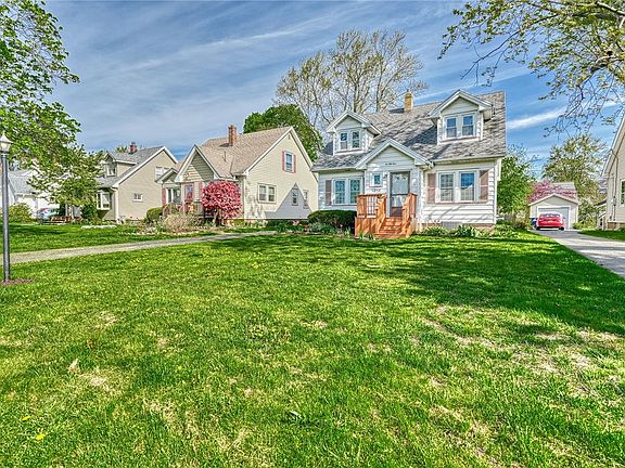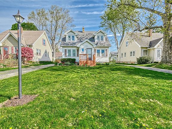 This W Irondequoit cape is situated on a dead-end street within walking distance to I-Square, Wegmans, & more! This 1,500+ sq.ft., 3 bed, 1.5 bath home has many highlights & updates! Upon approach, you'll notice the low maintenance vinyl siding & new front steps built in '20! As you enter through the front door, you cannot miss the gorgeous natural woodwork in the home along w/the new carpet throughout! The living room is spacious & flooded w/natural light entering through the vinyl replacement windows which are throughout the home too! Rounding out the 1st floor is a nice sized formal dining room, 1st floor bedroom, 1/2 bath off kitchen, & large kitchen w/a great footprint ready for the new owners remodel! Upstairs you'll find two spacious bedrooms & the full bath which has been fully updated w/tile shower surround, luxury vinyl plank flooring, & new fixtures! The partially finished basement provides some extra space, perfect for a game room or play room! SOLID mechanics include a high efficiency furnace '13, central air NEW in '23, & h2o heater '17! Out back you'll find a new patio done in '17, a fully fenced yard, & 1 car garage! Delayed Negotiations until 5/13 starting @ 12 PM!