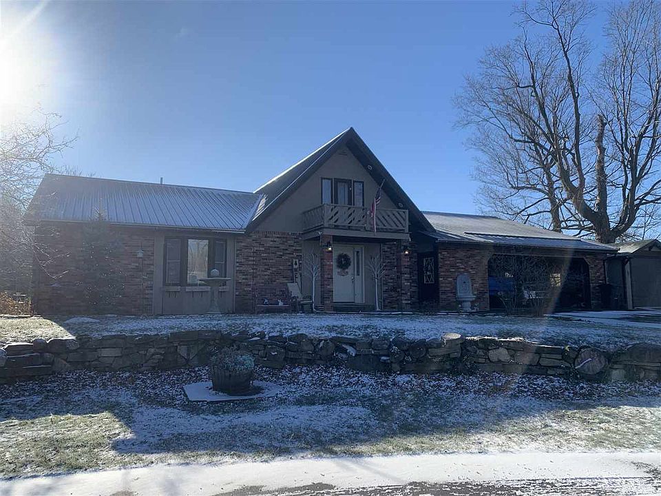 This beautiful brick home is situated on 16.40 acres of land with a new metal roof, 2 car garage and a bonus 2 car garage situated near the road. There is an inground heated pool with 2 waterfalls, some new flooring, a beautiful loft with knotty pine ceilings and two skylights! There is a gas fireplace, a master bedroom and a shared master bathroom. The kitchen is open to the dining and living room and cathedral ceilings. The kitchen features stainless steel appliances and granite countertops. There is a sunroom off the master bedroom and a wine room in the basement. There is a large storage building next to the garage to store all the outdoor items or lawn tractor. There is a beautiful gazebo and stone patios all around. This home is set in a great setting and offers beautiful landscaping and a beautiful rock garden. If you want space and land this one is it.
