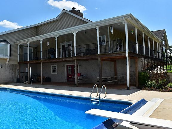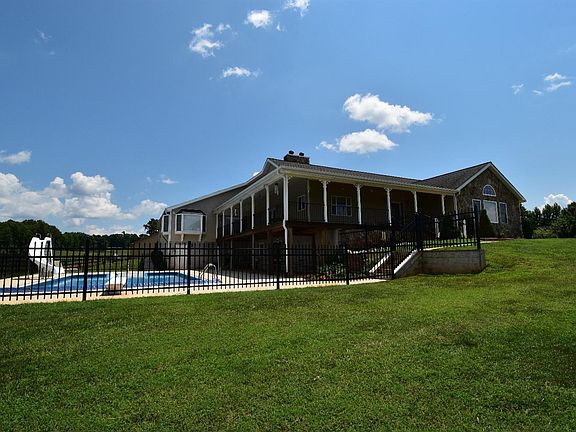 Welcome to Windy Hill Ranch, ideally positioned for panoramic spectacular views of the Blue Ridge Mountain on approx. 76+/- acres. This sprawling contemporary ranch is PERFECT for today's casual lifestyle, with over 5500 fin. sq. ft, wrap around covered porch, vaulted ceilings, main level laundry, extensive kitchen with 2 Jenn-Air ranges, plenty of counter space & cabinetry while enjoying mountain vistas. 4 BRs on main level all boast en-suites, plenty of walk-in closets, a magnificant master suite (28x22), boasting a walk-in closet w/built-ins and master bath w/Jacuzzi tub, separate shower & double vanities. Lovely loft overlooking main level living space, perfect for office or game room. Hardwood floors throughout most of main level). The owner paved the driveway, added fencing, in-ground heated salt-water pool, attached 2-car garage, mud room, and master suite addition. The terrace level has another laundry and kitchenette, PLUS cooler room, full bath, tons of storage. 3 min to hwy!