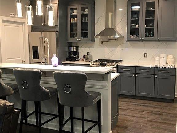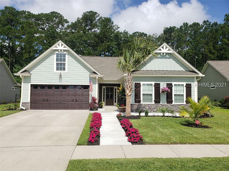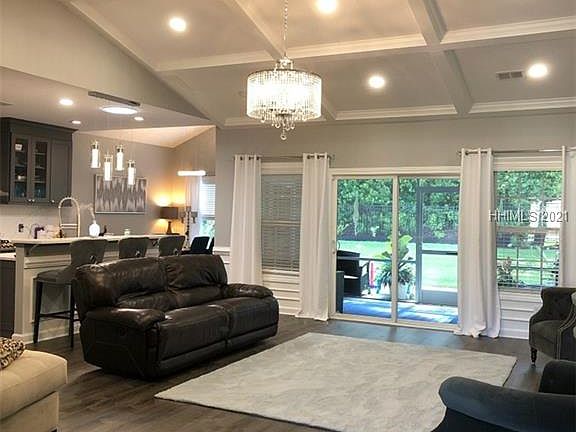 Owner invested over $60 K in recent luxury upgrades & it shows! Prepare to be wowed by this incredible 3 Br/2 Bath Bluffton home built in 2016. Interior features include new luxury vinyl flooring, Calacatta quartz counters & backsplash, custom cabinets, upgraded SS appliances, custom coffered ceiling trim, moldings, lighting, vaulted ceilings & more. Complete exterior transformation includes new paint, concrete patio additions, landscaping, fencing, wooden shutters, glass front door & granite grip garage floor. Enjoy the screened-in porch & gorgeous landscaped yard complete w/ nature & privacy. Easy drive to Savannah, Beaufort,& HHI Beaches!