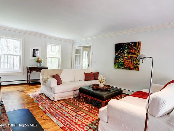 Nestled in the serene landscape of West Hurley, this enchanting 4 bedroom, 2.5 bath home is a splendid retreat for weekenders and families alike. Sitting proudly on a generous 6.25 acre spread, this property promises both privacy and picturesque views, complete with a pond, stream, and your very own network of hiking and riding trails.