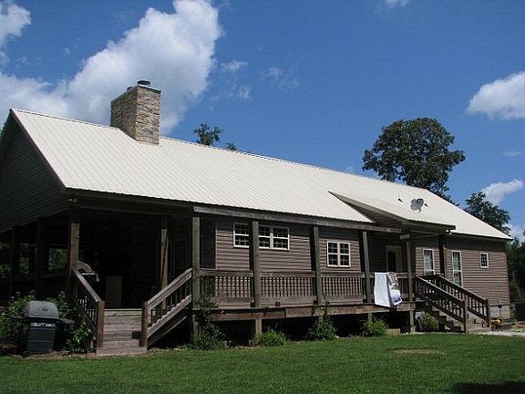 13.4+/- acres, barn and 2 horse stalls, nice fenced area for farm animals. Home has wrap around porch and large side porch with rocked outdoor fireplace. Inside the fireplace in the great room has gas logs. Open floor plan. Kitchen and bath floors are tile. Master bath has a separate tile shower and large tub. Nice property with stream! Short Sale - contracts must be approved by lender