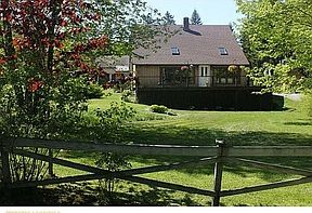 Spacious 3 bedroom, 2 bath contemporary on 2.4+/- well landscaped acres. The home offers an inviting living room w/ a wood stove + high ceilings, a well-equipped kitchen and a lovely, sun-filled bonus room. A huge, three bay shop sits behind the home.