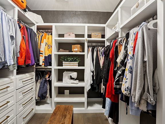 The thoughtfully designed interior includes engineered hardwood flooring, plantation shutters, and stunning upgraded light fixtures throughout. The kitchen boasts a brand-new quartz countertop on the oversized island, soft-close cabinets and drawers, and even a built-in space above the microwave for a TV. In the primary suite, you’ll find a custom walk-in closet with a full organization system and a bathroom with a bidet-enhanced toilet. Every closet in the home features custom shelving (no wire racks here) and the mudroom includes an upgraded pantry closet system for additional storage.