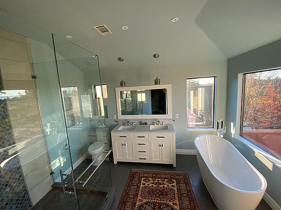 Modern view home built in 1994 following the 1992 Oakland hills fire. Separate detached 700 sq. ft. studio above 2 car garage. New AC and heating system Nov. 25, 2015. New roof studio + house installed May 27, 2017 (GAF Timberline Ultra HD - Charcoal 30 year shingle). Studio new water heater Dec. 2015. House new water heater July 2015. Cement side stairway built Nov. 2018. Exterior painted Spring 2019. Master bath remodel Sept. 2020. Exterior wood stairs and retaining walls replaced Nov. 2020.
