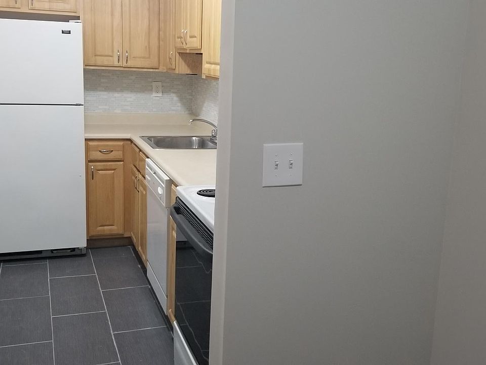 Completely updated 1 bedroom, 1 bathroom, top floor End Unit. Updated to include very large bedroom, freshly painted, new laminate wood floors and crown moulding throughout, fully tiled kitchen and bathroom. Washer and dryer are included in the unit. Fully applianced kitchen with dishwasher and stove. Zoned electric heat. Very spacious, just under 900 square feet. Convenient location to I-95, Train Station, shopping, restaurants. V.A. Hospital and walking distance to University of New Haven. Secure building with intercom entry. Small pets negotiable. No smoking in building. Those with prior evictions will not be considered. Max 2 occupants. Call to schedule a viewing. $40 non-refundable credit and background check per adult.