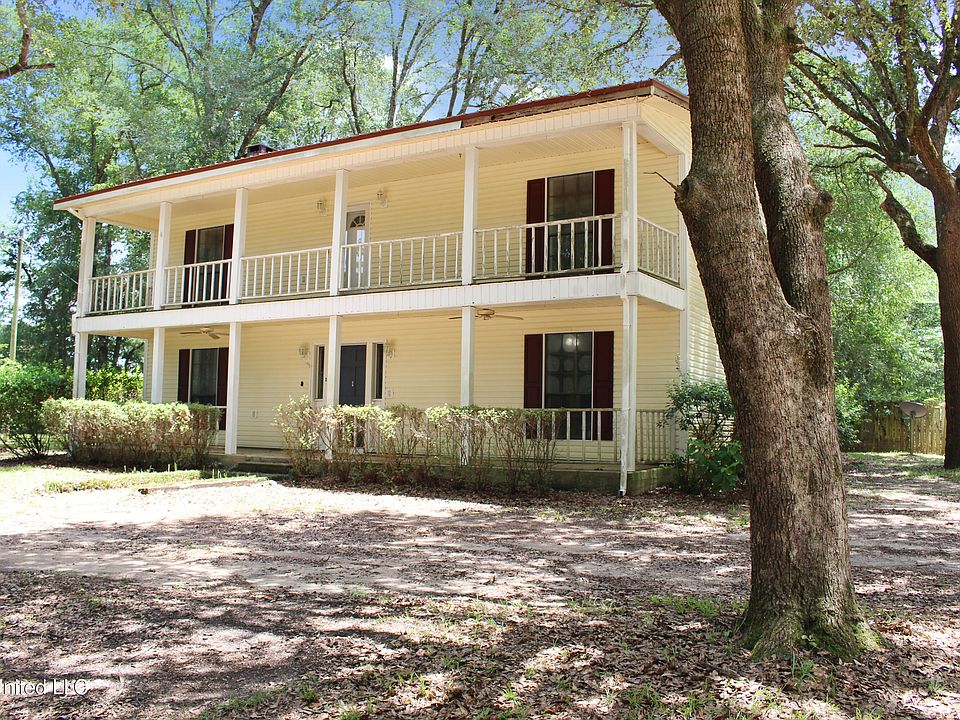 Great potential to make this home your own, 4 bedrooms, 2.5 bath home with expansive living area, complete with cozy brick fireplace, provides welcome space for relaxation. New paint and flooring. Enjoy the outdoors while sipping your coffee from your balcony overlooking the large oaks that shade your yard. Nestled on over 3 acres of land, this property offers ample space for both privacy and outdoor activities, making it an exceptional place to call home.