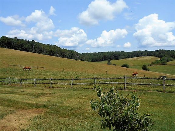 Clean living at its best! This brick home is a throwback to days when families enjoyed outdoor living & working just as much as indoor. The home has a newer roof & heat pump and had new flooring recently installed. The basement has a large rec room w fireplace and a 3rd garage with a sep driveway. Lots of unfinished space in bsmnt for workshop/canning/hobbies. Gorgeous rolling pasture & mountain views with over an acre of ALL USABLE land. Large outdoor deck, mature trees, detached garage w power/water/heat and concrete pad ALSO a barn with concrete floor, loft and balcony!Double garage on main