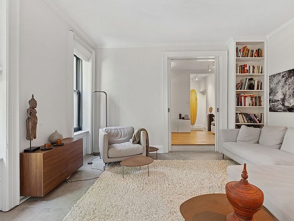 Featured in Architectural Digest, this impeccably maintained and uniquely designed home offers a serene blend of classic charm and modern sophistication—an oasis tucked away in the heart of Chelsea. The welcoming entry foyer leads you into a striking, windowed kitchen that’s truly one of a kind. A harmonious mix of warm wood and high-gloss white cabinetry pairs beautifully with granite and marble counter-tops, exposed brick, and top-of-the-line stainless steel appliances, including a Fisher & Paykel refrigerator and Bosch dishwasher. With ample storage and thoughtful design, it’s the perfect space for anyone who loves to cook and entertain. The renovated, windowed bathroom features classic subway tile, a stylish vanity with natural wood accents, and a Moen shower head—combining function and elegance. The adjacent dining room is bathed in natural light from its large window, making it ideal for everything from casual meals to formal gatherings. Beautiful stained-glass pocket doors open to a thoughtfully designed living room, ideal for comfortable entertaining. Another set of stained-glass doors leads to a generously sized bedroom with three windows. This flexible space is large enough to be divided into two distinct areas, offering a variety of layout possibilities. Throughout the home, you’ll find hardwood floors, oversized Italian porcelain tiles, and abundant storage—including a private storage bin that transfers with the unit.